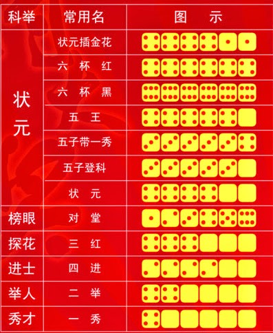 各獎項的數目也是有規矩的,從一秀、二舉、四進、三紅、對堂到狀元的獎項都是倍數遞減,像一秀一共有32個獎,二舉就倍數遞減為16個、四進就8個、三紅4個、對堂2個、狀元1個